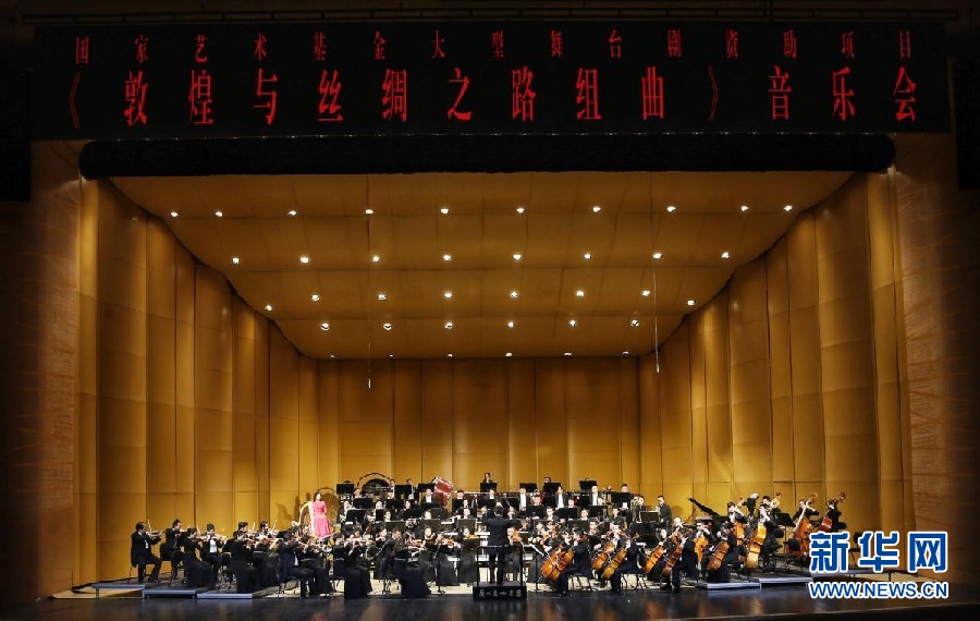 《敦煌與絲綢之路組曲》由俄羅斯作曲家布列沙克·維克多·瓦西里耶維奇創(chuàng)作,分為《朝圣敦煌》《祝福綠洲》《莫高圣禮》《藝術(shù)圣殿》《絲路情歌》《古道回聲》《海上絲路》《力與速度》和《和平萬歲》九個(gè)樂章。組曲追溯古代絲綢之路的繁榮昌盛,歌頌“一帶一路”倡議背景下今日絲綢之路的和平崛起,暢想未來絲綢之路的輝煌盛景。新華網(wǎng)發(fā)(薛強(qiáng) 攝)