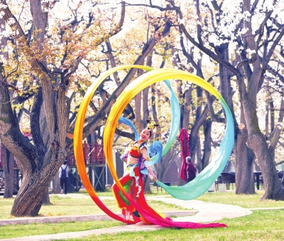 在百年梨樹下翩翩起舞的敦煌飛天“仙女” 張建平 攝