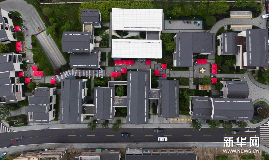 6月6日,空中俯瞰瓶窯老街內(nèi)的非遺館群(無人機照片)。新華社記者 徐昱 攝
