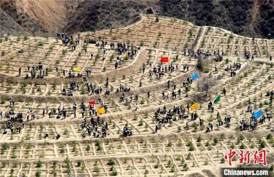 慶陽市西峰城區(qū)職工春季義務植樹現場。 (資料圖) 徐亞東 攝