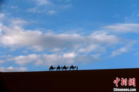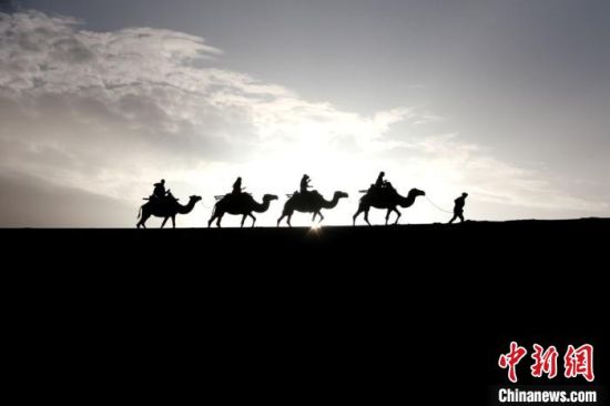 圖為敦煌大漠晨光引客“畫中游”。 張曉亮 攝