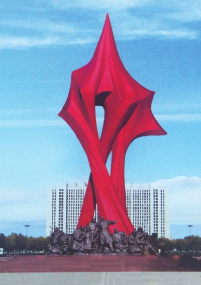 內蒙古興安盟是新中國建立的第一個紅色革命自治區(qū),建于1947年,而位于興安盟行署前烏蘭浩特中心公園廣場就有一座何鄂先生創(chuàng)作的不銹鋼城雕《焰紅興安》,是興安盟獨具特色的標志性紅色建筑。