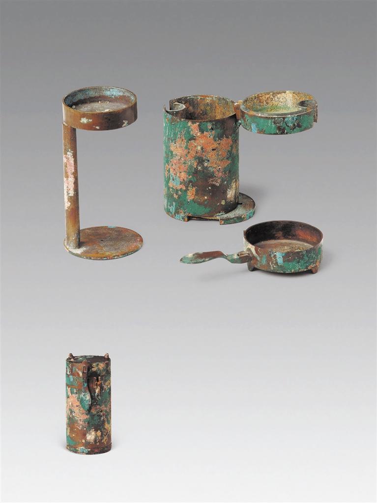 除了管住油煙,類似長信宮燈這樣的“保潔燈”還有一個(gè)值得稱道的設(shè)計(jì)。它們的燈裝在一個(gè)可以轉(zhuǎn)動、留有開口的燈罩里。這樣一來,既能擋住風(fēng),又能通過調(diào)節(jié)開口來控制燈光照射的角度,一舉多得。