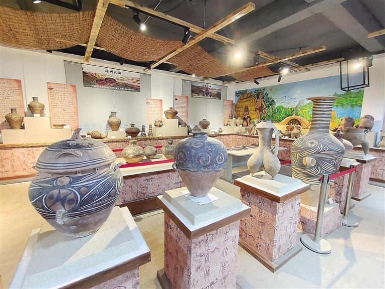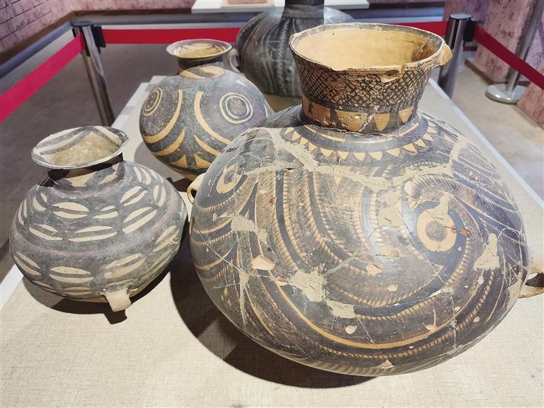 走進(jìn)彩陶藝術(shù)館,目之所及都是造型獨特的仿彩陶罐,在墻上可以看到陶片裝飾的藝術(shù)品,細(xì)節(jié)透著“彩陶之鄉(xiāng)”的文化底蘊。