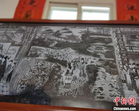 中新網(wǎng)蘭州11月17日電 (記者 楊娜 高瑩)“黛玉進京”“寶黛初會”……耗時十余載,蘭州七旬藝人陶世清將《紅樓夢》中的三十余個經(jīng)典場景搬上大理石。在一塊長一米四,寬五十厘米的大理石上,人物的動作、表情惟妙惟肖,桌椅帷幔、亭臺樓閣精致細膩。