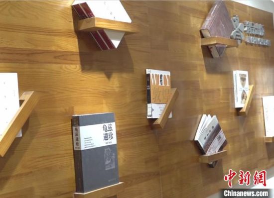 圖為讀者出版集團甘肅教育出版社的“精品圖書出版墻”,敦煌類圖書是該社出版的一個重要板塊?!“瑧c龍 攝