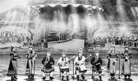 除了家族傳承還有師徒傳承。展演中,72歲的瑪曲龍頭琴國家級非遺傳承人華爾貢和徒弟們一起登臺演出,他們明快地彈唱,仿佛把觀眾帶到遼闊的草原上。