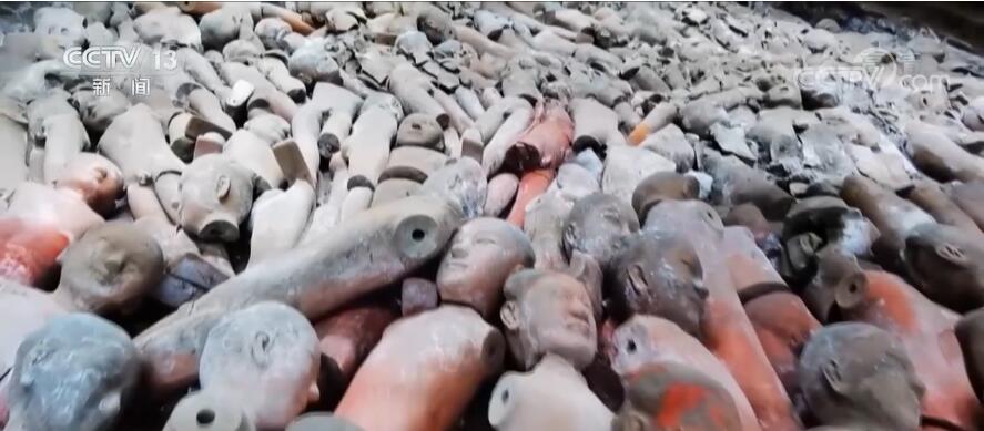 考古人員還發(fā)現(xiàn),江村大墓的外圍分布著115座外藏坑,呈放射狀分布。從2017年起,考古人員對其中8座外藏坑進行了考古發(fā)掘,出土了陶俑、鐵器、銅器、官印等大量漢代文物,經過專家論證,最終確定該墓為漢文帝霸陵。