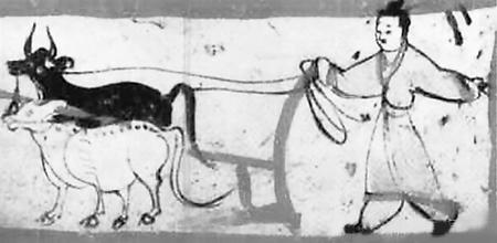 農(nóng)耕圖 (本版圖片均為資料圖,出自嘉峪關(guān)魏晉墓磚畫)
