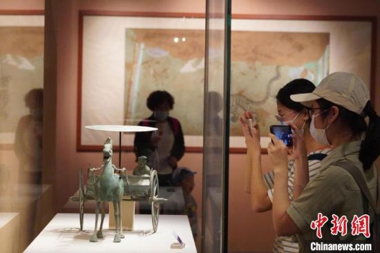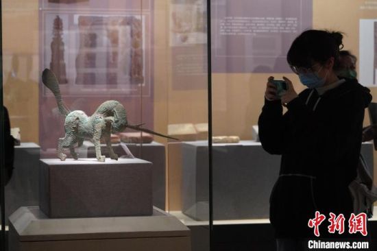 5月18日,游客來到位于蘭州的甘肅省博物館內(nèi)參觀《大道攸歸:五涼文化展》。圖為“銅獨角獸”。 九美旦增 攝