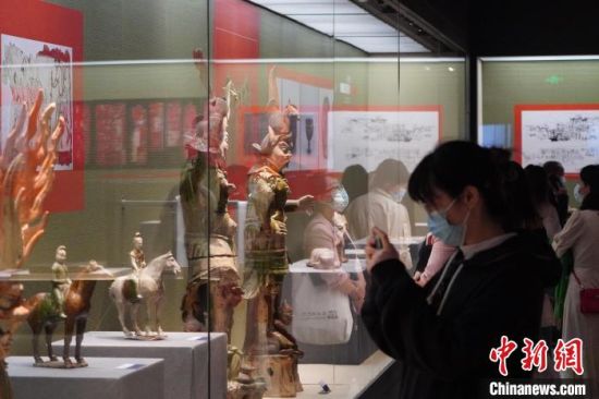 圖為游客參觀“五涼文化展”?!【琶赖┰?nbsp;攝