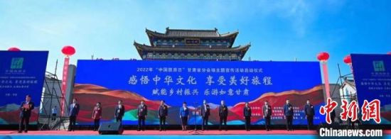 5月19日,2022年“中國旅游日”甘肅省分會場主題宣傳活動啟動儀式在甘肅平?jīng)鍪信e行。圖為活動現(xiàn)場?!「拭C省文化和旅游廳供圖