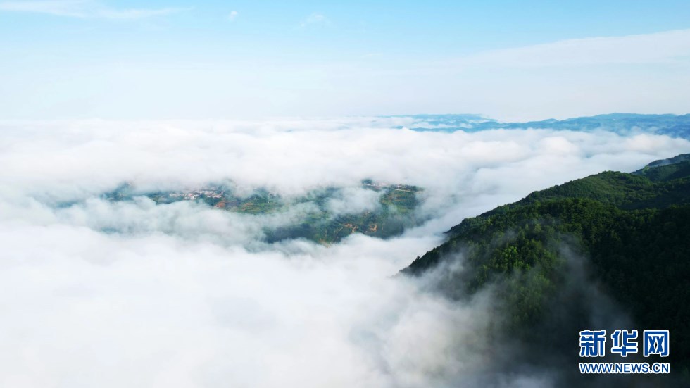 6月27日清晨,“軒轅故里”甘肅省天水市清水縣山門鎮(zhèn)出現(xiàn)壯美云海勝景,山巒之間云霧繚繞,潔白流云與峰巒疊嶂交相輝映,恰似一幅水墨山水畫卷,宛若人間仙境。新華網(wǎng)發(fā)(周文濤 攝)