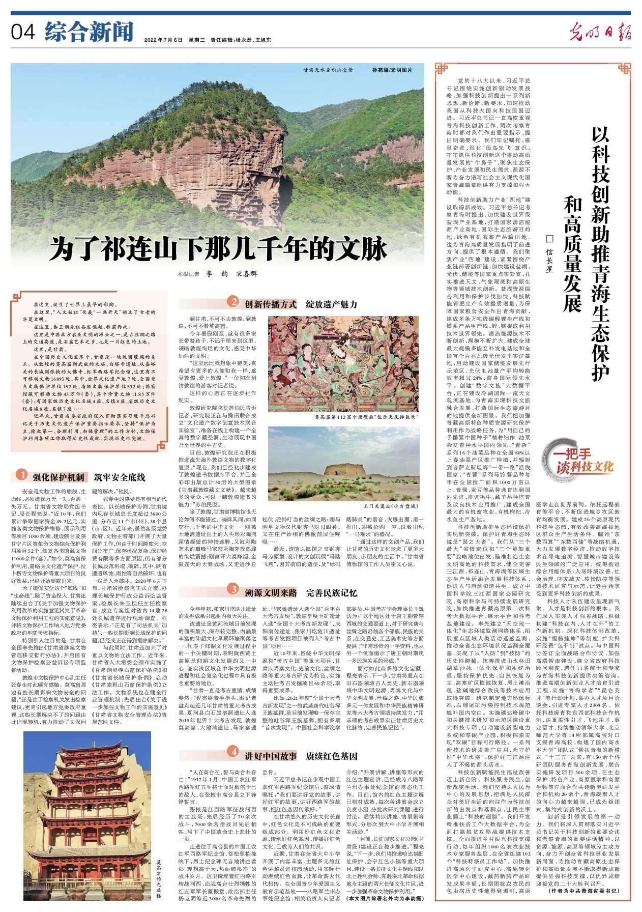 近年來(lái),甘肅省委省政府深入貫徹落實(shí)習(xí)近平總書記關(guān)于歷史文化遺產(chǎn)保護(hù)重要指示要求,堅(jiān)持“保護(hù)為主、搶救第一、合理利用、加強(qiáng)管理”的工作方針,文物保護(hù)利用各項(xiàng)工作取得歷史性成就、實(shí)現(xiàn)歷史性突破。