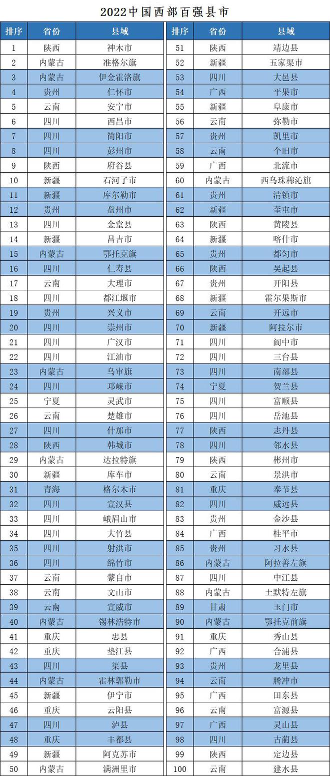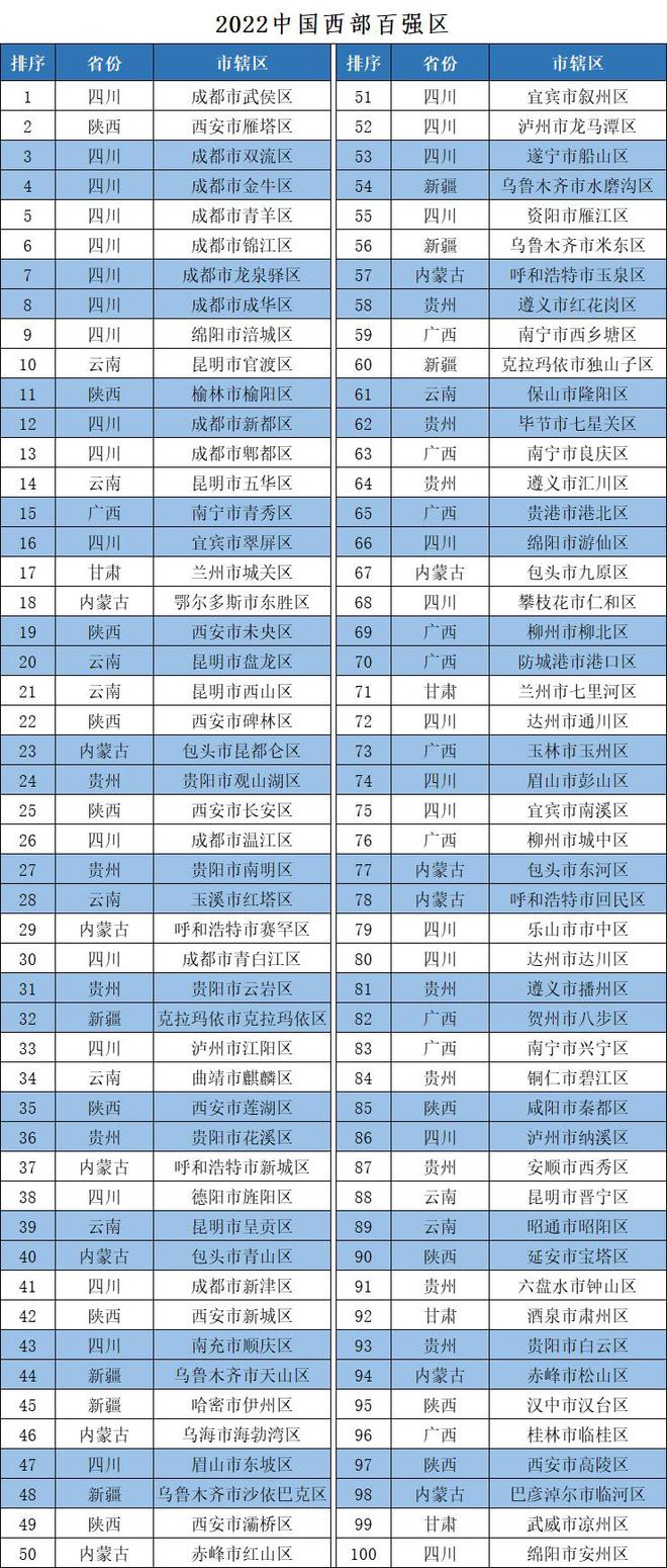2022中國(guó)西部百?gòu)?qiáng)縣市區(qū)榜單發(fā)布 甘肅一市四區(qū)上榜