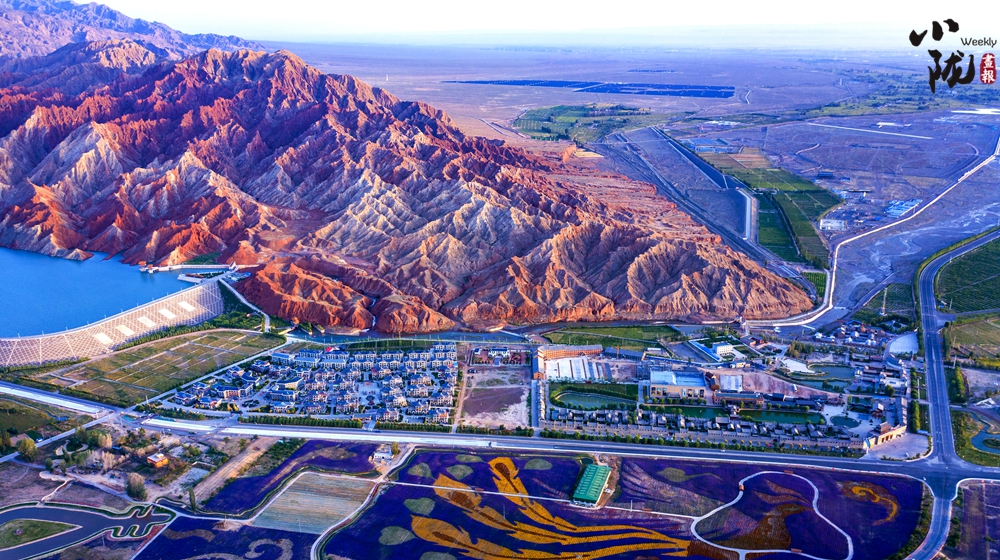 紅山灣水庫與丹霞國家地質公園山水相映,展現了“戈壁水鄉(xiāng)”的生態(tài)和諧新形象。