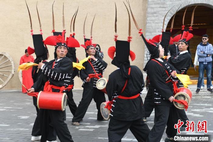 圖為5月9日,民眾現場表演“涼州攻鼓子”?!〈魑牟z