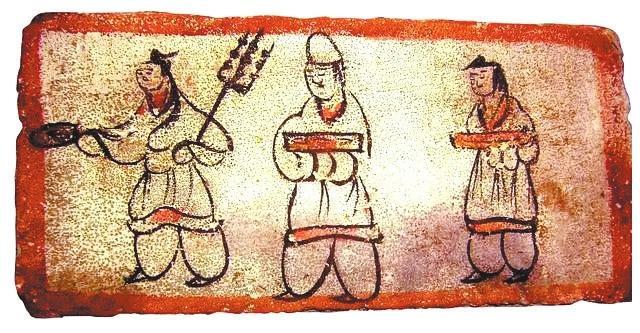 墓磚壁畫(huà)描述古人擼串場(chǎng)景。本版圖片由甘肅省博物館提供