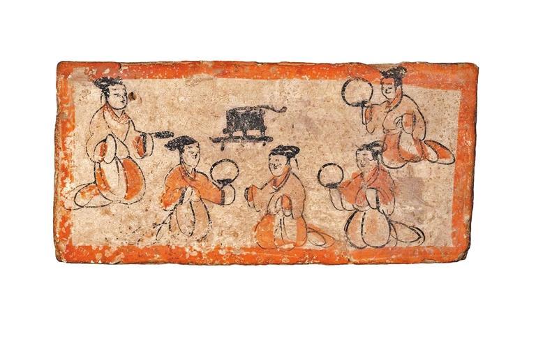 墓磚壁畫(huà)描述古人娛樂(lè)場(chǎng)景。