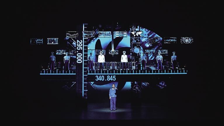 據(jù)了解,舞臺(tái)裝置上呈現(xiàn)出軍事工業(yè)的莊重感,如歌如畫般營造出了核潛艇極限下潛步步驚心的緊張氛圍,同時(shí)也讓觀眾近距離地走近了英模的成長歷程與內(nèi)心世界。