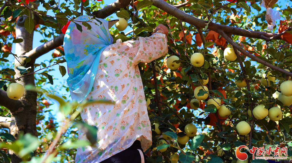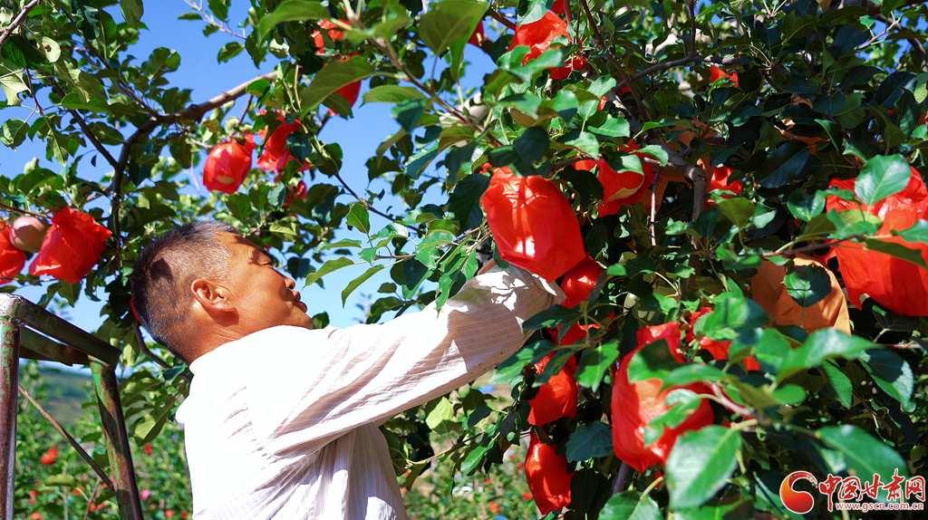 靜寧蘋果熟了!”當(dāng)下,靜寧縣的蘋果陸續(xù)成熟進(jìn)入采摘期,放眼望去,滿山的蘋果樹(shù)郁郁蔥蔥、枝繁葉茂,摘下果袋,一顆顆“金蛋蛋”俏耀枝頭,香氣四溢。此時(shí)隨處可見(jiàn)忙碌在果園地頭的果農(nóng),取袋、采收……處處一派繁忙景象。