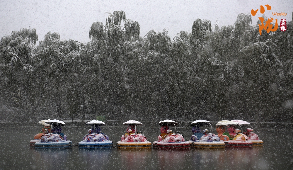 地上、樹(shù)上、屋頂上、亭子上……到處白雪皚皚,公園里像鋪了羊毛地毯似的。