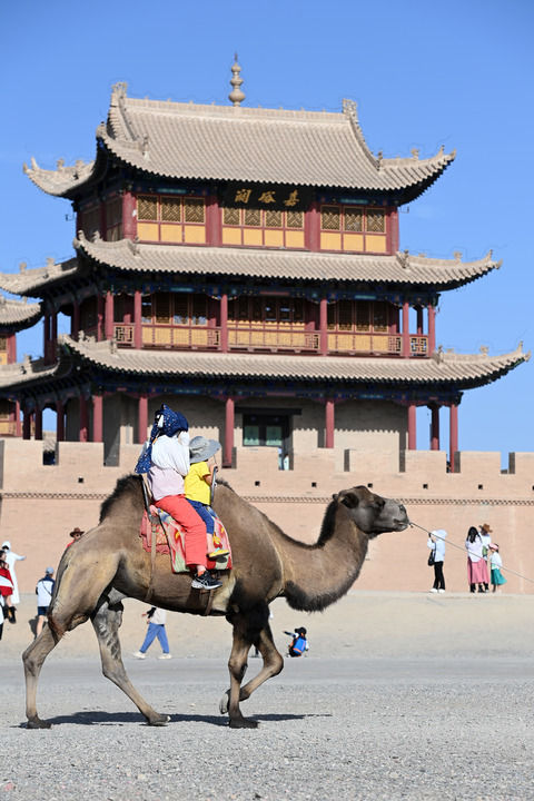 2023年5月10日,游客在嘉峪關(guān)關(guān)城景區(qū)游玩。 新華社每日電訊記者 馬希平 攝