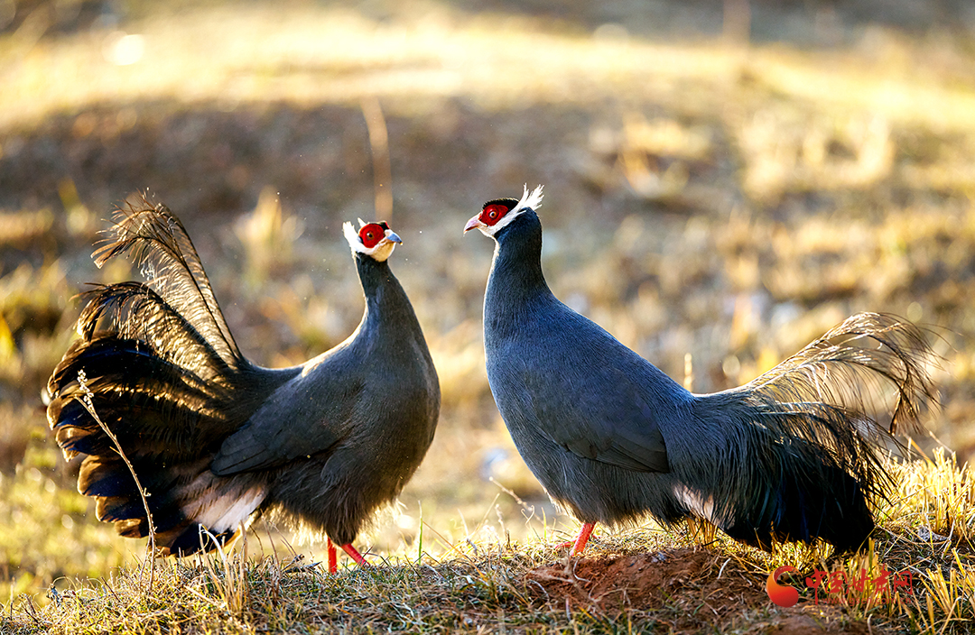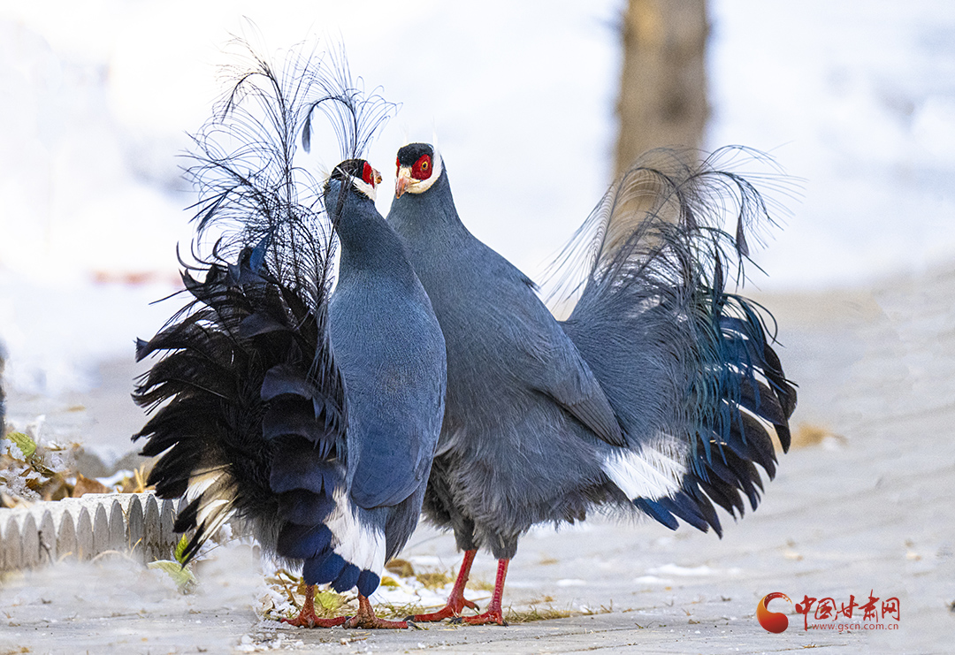 近日,祁連山國家公園甘肅省管理局張掖分局工作人員拍攝到國家二級保護(hù)野生動(dòng)物藍(lán)馬雞覓食嬉戲場景。