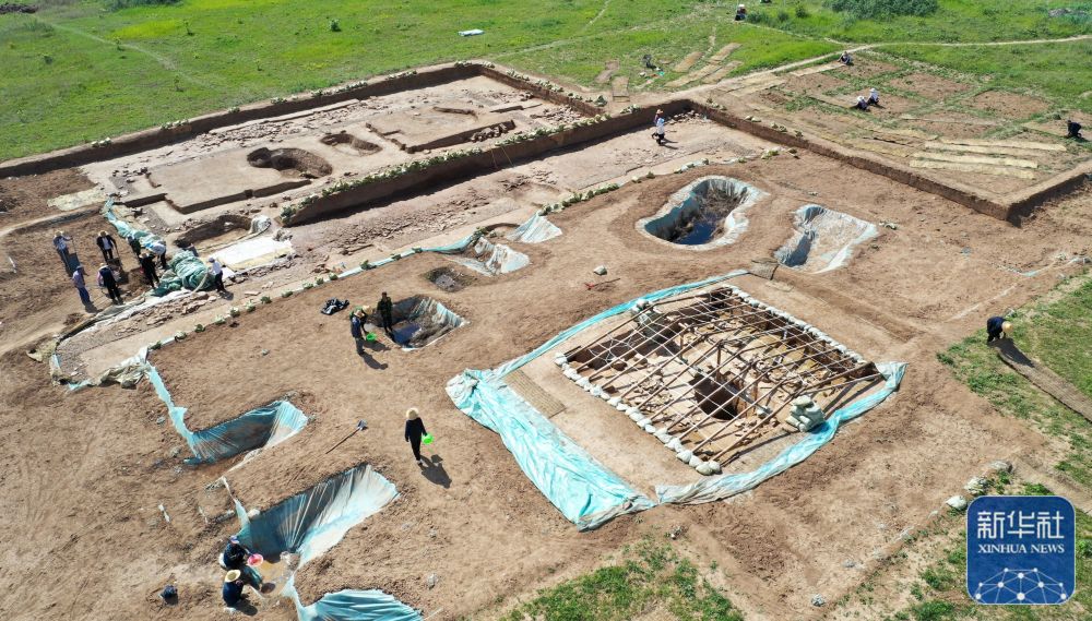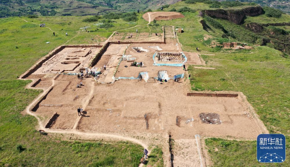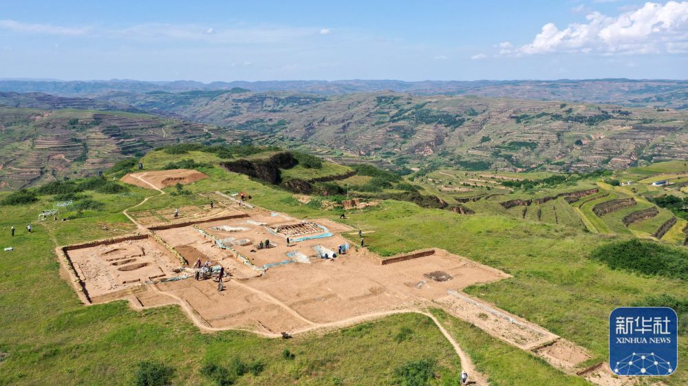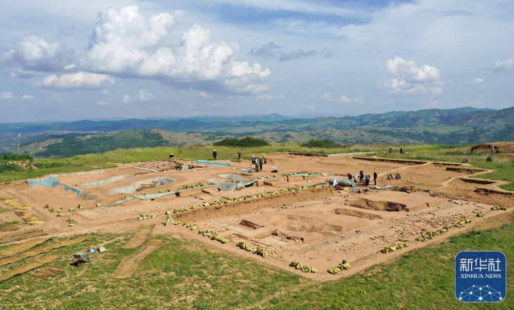 這是2022年6月10日拍攝的甘肅省隴南市禮縣四角坪遺址考古發(fā)掘現(xiàn)場(chǎng)(無人機(jī)照片)。新華社記者 郎兵兵 攝