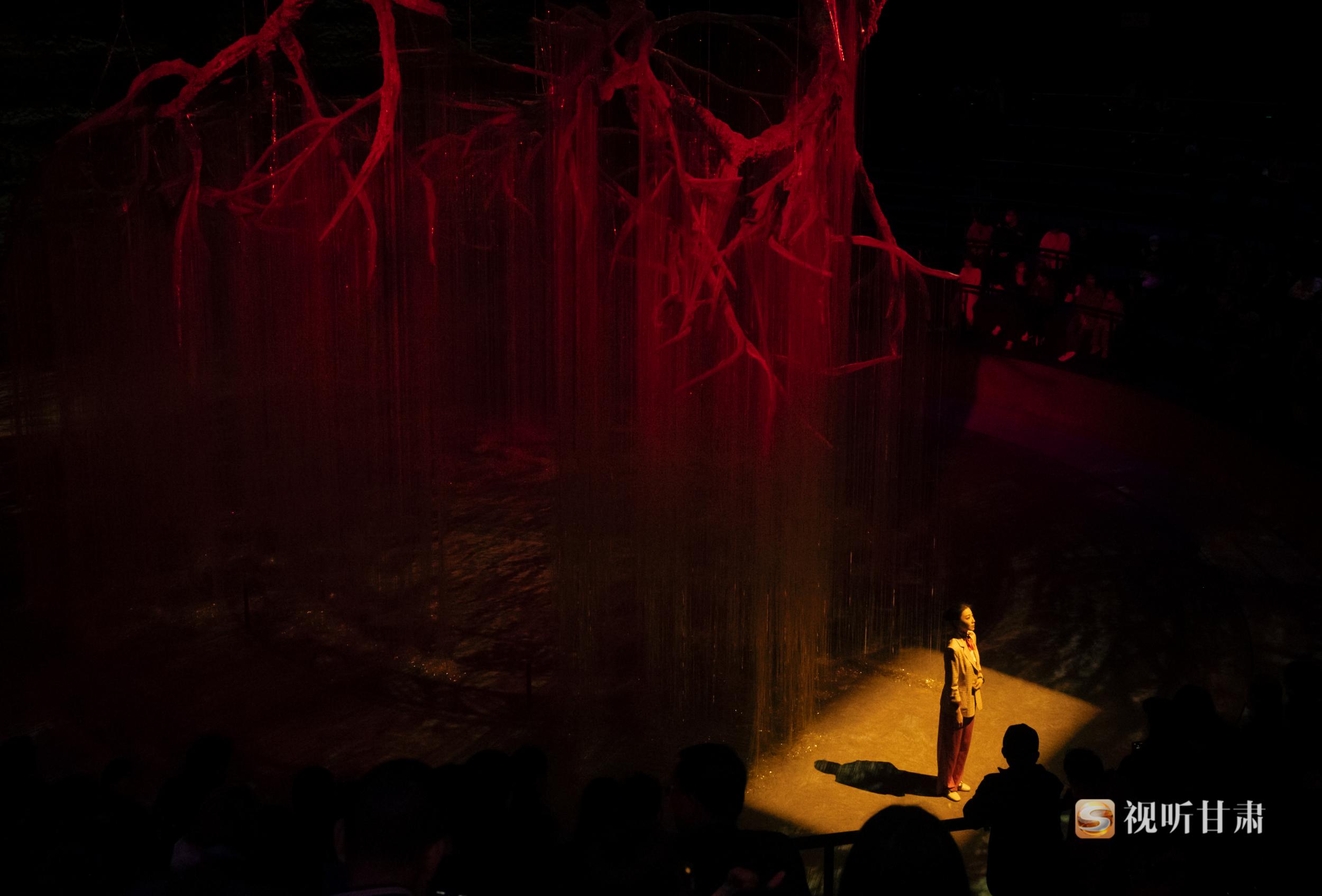 《天水千古秀》劇場內(nèi)部設(shè)置了罕見的,超大型聯(lián)動舞臺機(jī)械裝置、3D影像裝置、移動巨幕裝置、首創(chuàng)了許多特技效果,引領(lǐng)觀眾進(jìn)入壯觀瑰麗的幻境空間。不同于以往坐在觀眾席的觀演體驗,《天水千古秀》的觀眾是以邊走邊看的形式觀看演出,通過上、下兩條情景通道,在多維度的劇場空間內(nèi)與歷史人物互動,感受身臨其境的奇妙體驗。演出采用邊行走邊觀看的形式,使觀眾感受到的不僅限于平面,而是在多維度表演空間內(nèi)與歷史人物互動,感受身臨其境的奇妙體驗,運(yùn)用現(xiàn)代的思考方式探索天水的遠(yuǎn)古世界,來深入探索伏羲哲學(xué)“陰陽”世界觀,以“沉浸式”的方式讓觀眾更加直觀的感受歷史、貼近歷史。