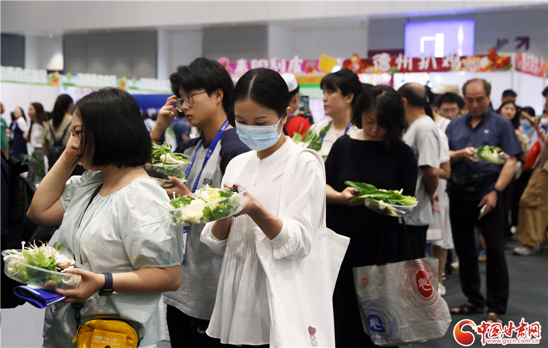 記者在現(xiàn)場(chǎng)看到,前往蘭州牛肉面、天水麻辣燙兩個(gè)展區(qū)品嘗美食的游客絡(luò)繹不絕。特別是在天水麻辣燙展區(qū),端著裝有各類(lèi)蔬菜菜盆的食客排起了長(zhǎng)隊(duì),紛紛翹首以盼,期待蔬菜下鍋,一嘗“麻”“辣”美味。