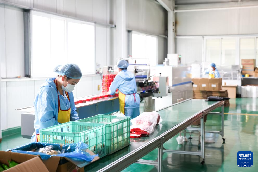 7月22日,在天水市秦州區(qū)一家農業(yè)企業(yè),工人在麻辣燙方便食品生產線上作業(yè)。新華社記者 范培珅 攝