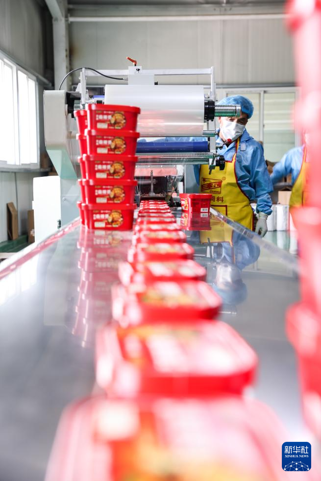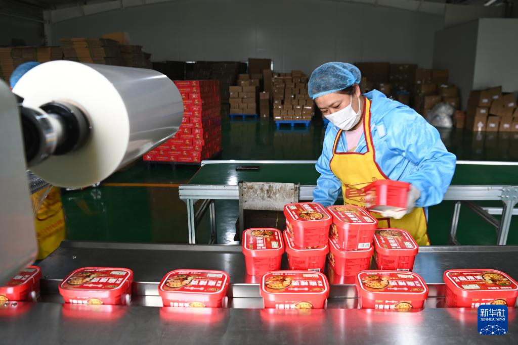 7月22日,工作人員在甘肅天水市一家麻辣燙企業(yè)車間內包裝產品。新華社記者 呂帥 攝