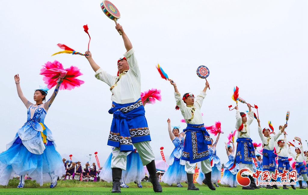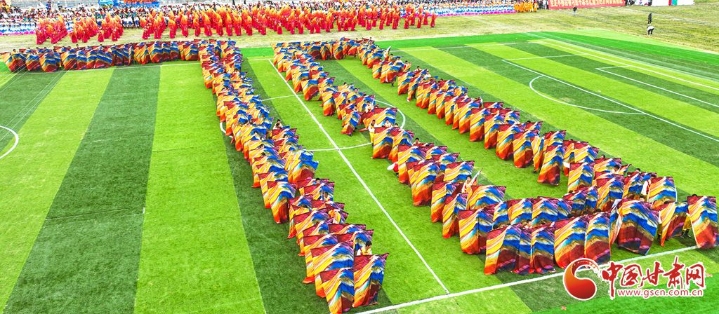8月13日,甘肅省張掖市肅南裕固族自治縣萬(wàn)名群眾身著節(jié)日的盛裝,齊聚在索朗格賽馬場(chǎng)上,展開主題為“感恩奮進(jìn)七十載·同心共富新時(shí)代”的歌舞表演,感謝偉大的中國(guó)共產(chǎn)黨,謳歌美好的新生活。