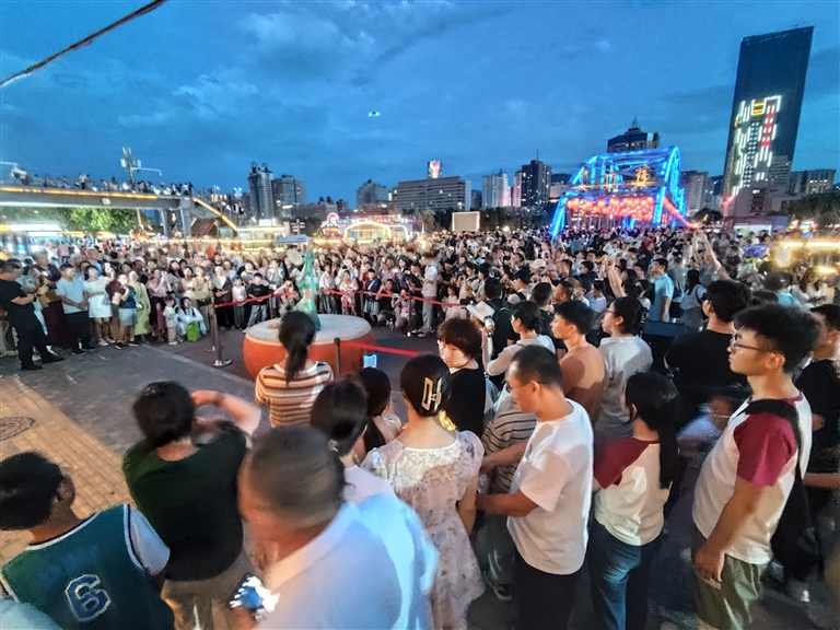 夜游黃河項(xiàng)目則圍繞黃金水道,結(jié)合蘭州南北狹長(zhǎng)、“橋梁之都”的特點(diǎn),串聯(lián)黃河母親、中山橋、白塔山,形成“夜游黃河”3條精品航線,開通水上巴士環(huán)線,并依托碼頭創(chuàng)新開展露營(yíng)、草地婚禮等活動(dòng),全方位展示了黃河蘭州段魅力。同時(shí),黃河之濱音樂(lè)展演、黃河市集等豐富精彩的活動(dòng)也已經(jīng)成為“夜游黃河”的常態(tài)化演出和節(jié)目。