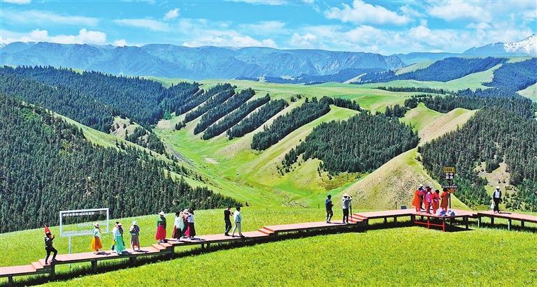 游客在肅南縣康樂草原領(lǐng)略祁連風(fēng)光。 新甘肅·甘肅日?qǐng)?bào)通訊員 王將