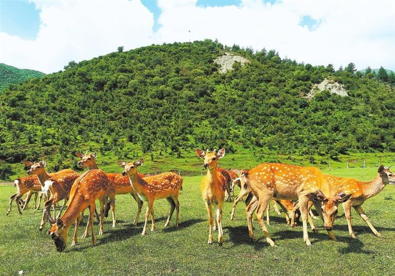 鹿場(chǎng)南環(huán)大山、北繞黃長(zhǎng)拉山,是個(gè)天然牧場(chǎng)。慢步走近活潑可愛的梅花鹿,不禁想起“鹿乃仙獸,自能樂性,鹿之一身皆益人”。這是李時(shí)珍在《本草綱目》中對(duì)梅花鹿的評(píng)價(jià)。一直以來,梅花鹿在民間百姓心中都是長(zhǎng)壽幸福的象征。