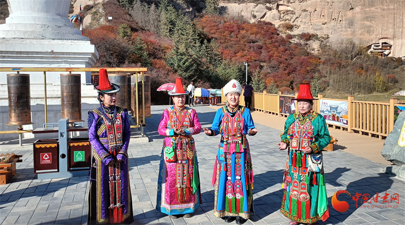 雪山之下,層林盡染,秋日的馬蹄寺美不勝收,裕固歌聲從北寺傳來,身著裕固服飾的歌者為游客帶來最炫民族風(fēng)。