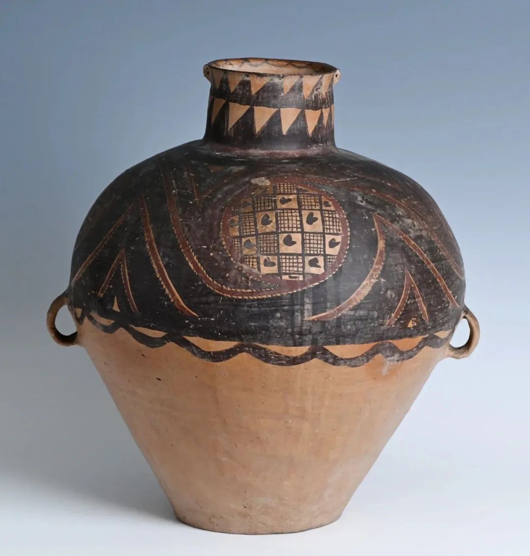 馬家窯文化創(chuàng)造了大批彩陶藝術(shù)精品,被譽(yù)為新石器時代彩陶之冠。形式優(yōu)美的漩渦紋是馬家窯類型的典型代表作,精美的半山類型彩陶又被公認(rèn)為馬家窯文化的巔峰階段,這一時期的彩陶器形勻稱圓潤,紋樣采用黑紅兩色繪制,更加繁麗精致,器具造型和圖案渾然一體,給人帶來賞心悅目的美感享受。