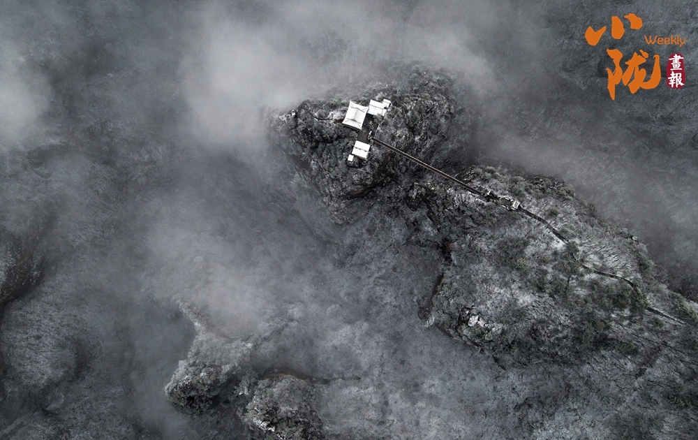 從高空瞭望,目之所及皆為雪林,縹緲的云霧在林間縈繞,時而蜿蜒迂回,時而傾泄流動,勝似仙境!