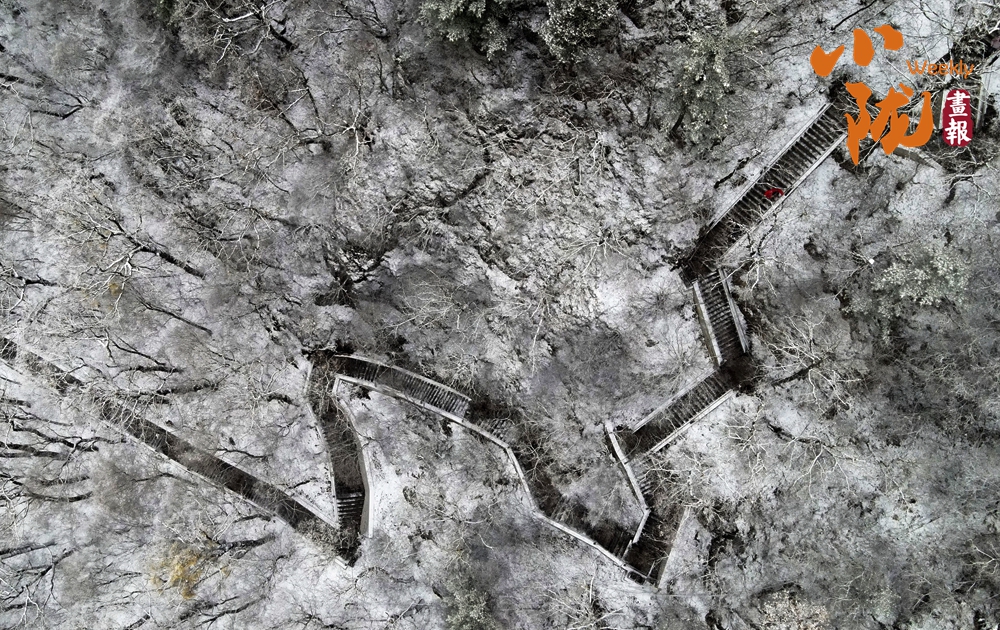 雪花褪去了樹葉的枯黃,整個崆峒山沉浸在一片白茫茫的世界里,景色美妙如畫。