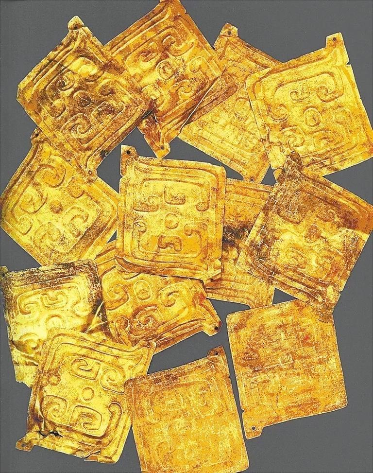 1994年春,陜西省考古研究所所長韓偉在法國、比利時(shí)訪問期間,見到了一批從香港過來的金飾片和一對金虎。韓偉先生對這組金飾片從器形、紋飾進(jìn)行了分析,并參考蘇黎世研究員莫爾夫人從金虎內(nèi)提取的木制標(biāo)本碳-14檢測結(jié)果,認(rèn)為這批金飾片為西周晚期秦人首領(lǐng)秦仲或秦莊公墓棺上的裝飾物。