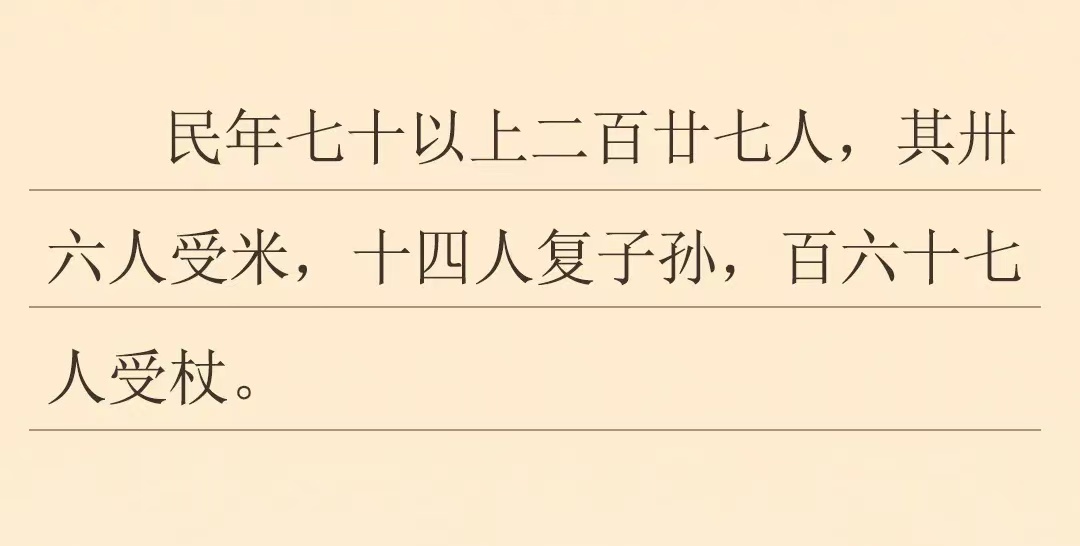 對民眾而言,朝廷的福利制度更是能帶來許多切實的好處。根據(jù)甘肅簡牘博物館所藏這枚養(yǎng)老簡,漢代的民眾養(yǎng)老制度主要內(nèi)容首先為王杖制度,即賜王杖,是從政治、法律與社會地位方面給予優(yōu)待;其次為高年復除,八十復算,可以幫子孫免除算賦;最后為受鬻法,即在仲秋八月發(fā)放粥米。簡文中所提到的這227名老人,分別享受以上各個優(yōu)待。