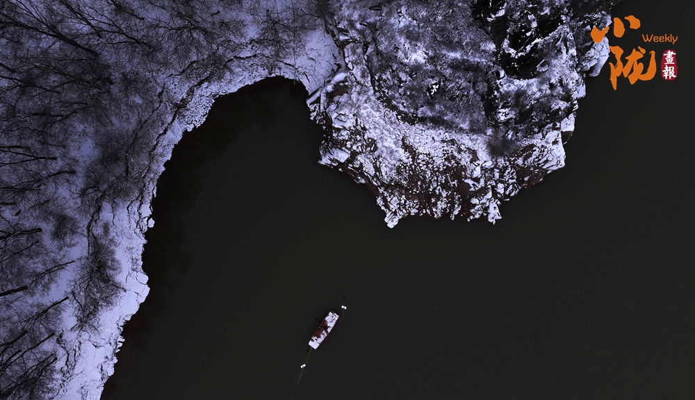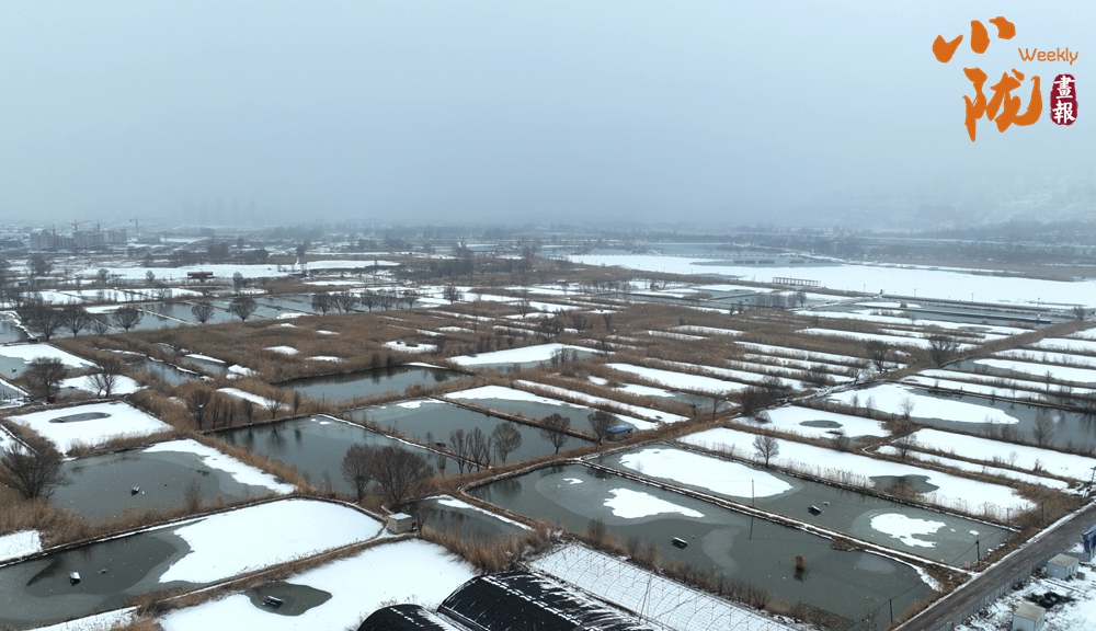 宛如江南水鄉(xiāng)的太極島在雪的映襯下,魚塘四周暗黃色的蘆葦枯敗中藏神韻,它們披著白雪,頂著寒風(fēng),為大地增添了一抹溫暖的色彩。
