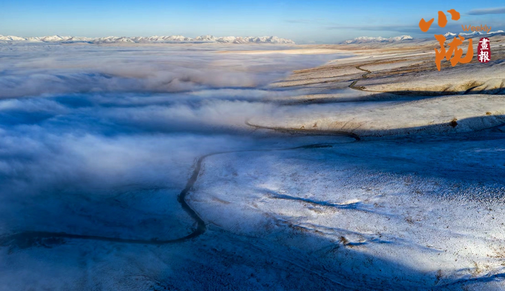 祁連山下,被譽(yù)為“空中草原”的康樂(lè)草原段披上了銀裝,皓然一色,如詩(shī)如畫(huà)。