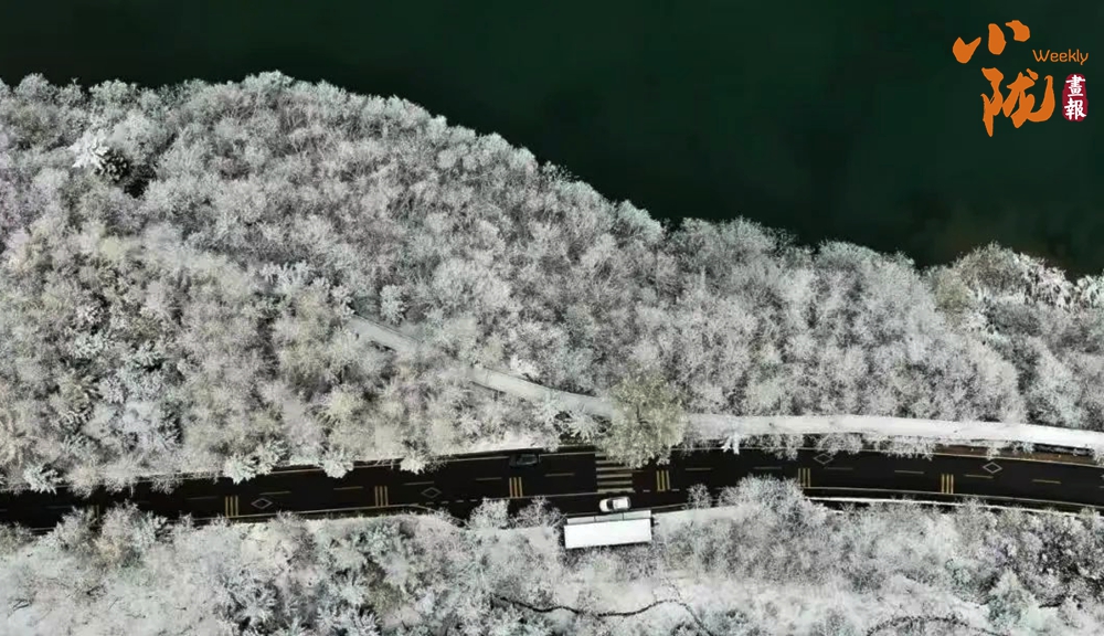 遠峰近林,銀裝素裹,似是素手描繪的水墨畫卷。