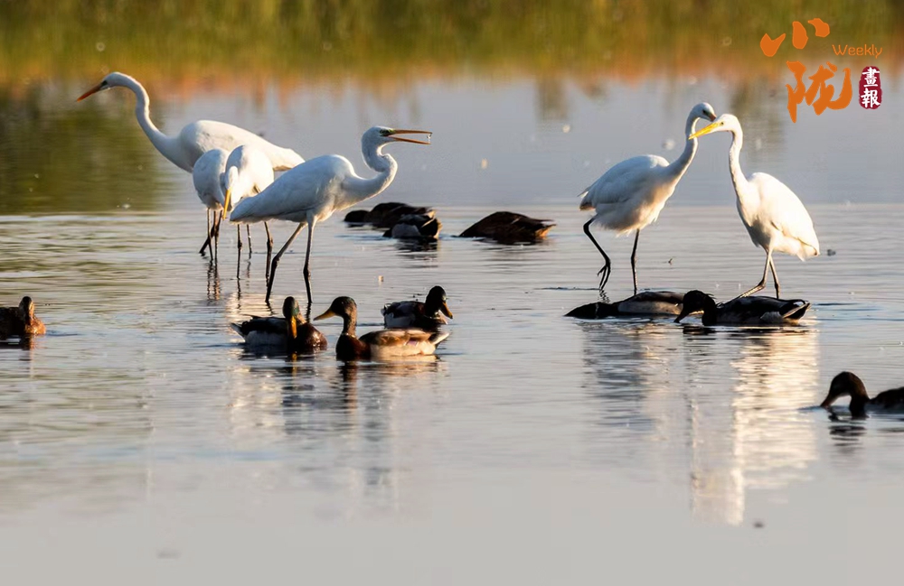 湖中的白鷺翩翩起舞,嬉鬧翻飛,歡快鳴叫,有的停落湖岸,有的游向湖心,有的翻飛空中,為游客帶來(lái)無(wú)盡的歡樂(lè)??带B兒們嬉鬧,仿佛回到童年時(shí)代。自由、自在、生機(jī)無(wú)限,讓每個(gè)人感受到無(wú)窮的生命力量。