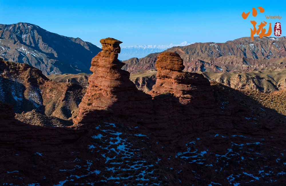 紅色丹霞被春雪覆蓋,在陽(yáng)光的照耀下,紅色山崖層層疊疊、縱橫交錯(cuò),皚皚白雪點(diǎn)綴其中,唯美壯觀。平山湖的山,就在這樣悄無聲息的雪中,幻化成了氣勢(shì)磅礴的丹霞,綿延千里,浩瀚無邊。