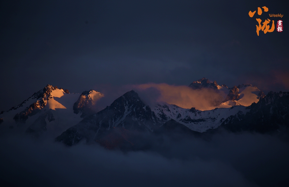 側(cè)目而視,近日一場降雪和夏日閑云相伴相依,近處的雪和遠(yuǎn)處的云相映成趣,共同把天空擦拭得深藍(lán)如鏡。這種“積雪長留峰素裹,浮云飄忽去無邊”的夢幻景色,會(huì)將你平日里積蓄在心頭的那些世俗凡塵濯洗得干干凈凈,有一種遠(yuǎn)離人世的幻覺。