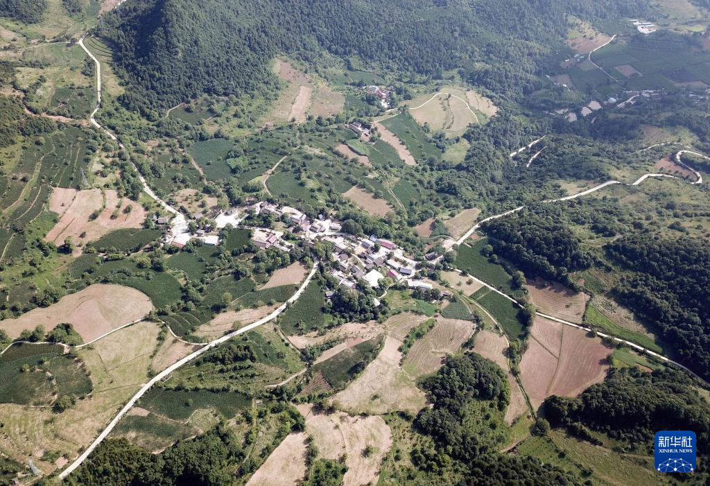 7月14日拍攝的青泥嶺腳下的青泥村(無人機照片)。新華社記者 陳斌 攝